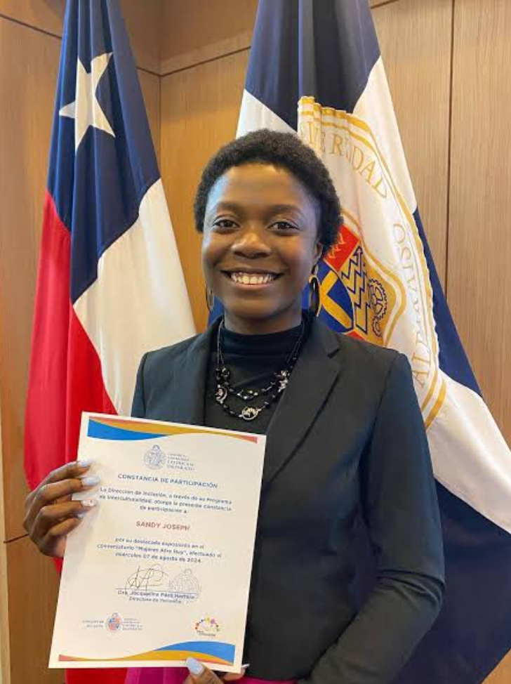 Con apenas 24 años, Sandy Joseph —conocida como “Diosa Haitiana”— continúa consolidándose como una de las voces afrodescendientes más influyentes de la juventud haitiana en Chile. Activista, creadora digital, gestora cultural y ahora Licenciada en Ciencias Jurídicas, Sandy representa una combinación excepcional de formación académica, compromiso social y orgullo cultural.