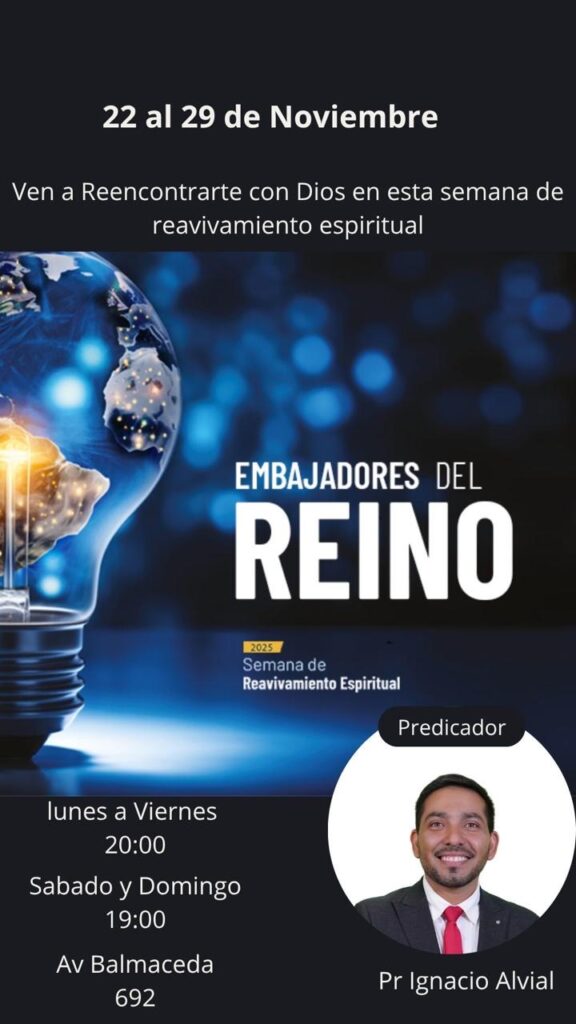 La Semana de Reavivamiento contará con la predicación del Pastor Ignacio Alvial, un siervo de Dios reconocido por su mensaje claro, profundo y lleno del poder del Espíritu Santo.